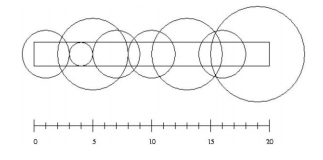 接下来的 n 行,每行包含两个整数,给出一个喷头的位置和浇灌半径(上面的示意图是样例输入第一组数据所描述的情况)。