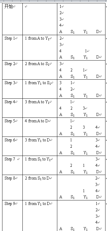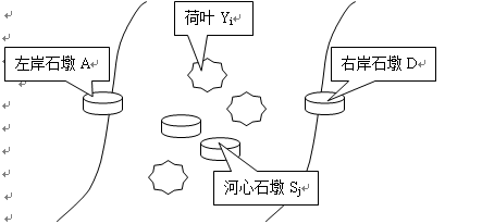 大小各不相同的一队青蛙站在河左岸的石墩(记为A)上,要过到对岸的石墩(记为D)上去。河心有几片菏叶(分别记为Y1…Ym)和几个石墩(分别记为S1…Sn)。图示如下: