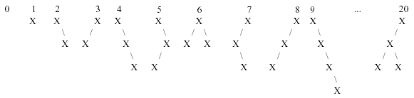 下面列出的是前10个二叉树和编号为20的二叉树: