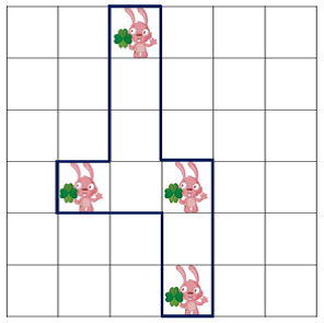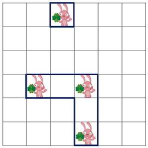 接下来n行每行为一对正整数x,y,表示第x行第y列的方格中有一只兔子。