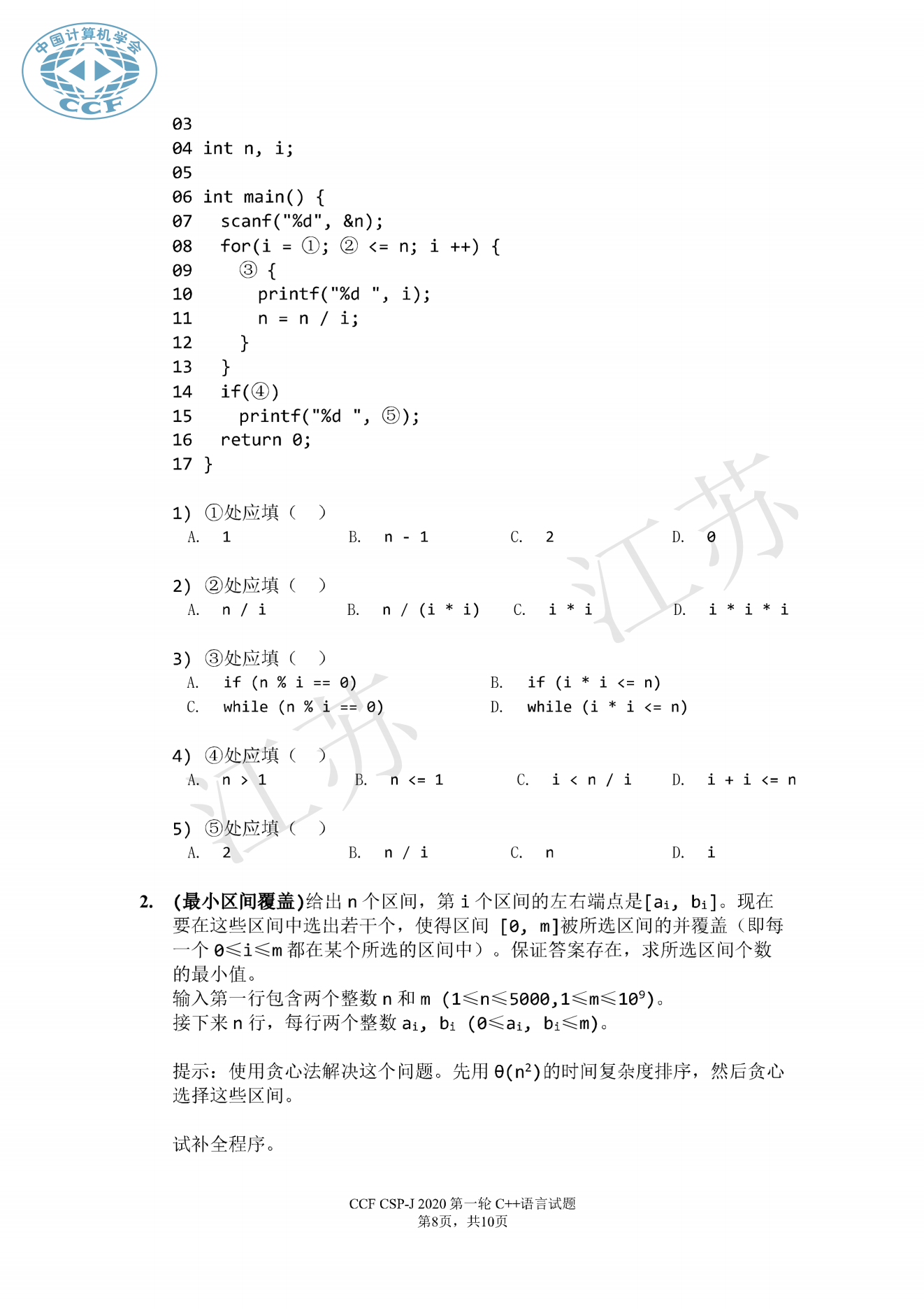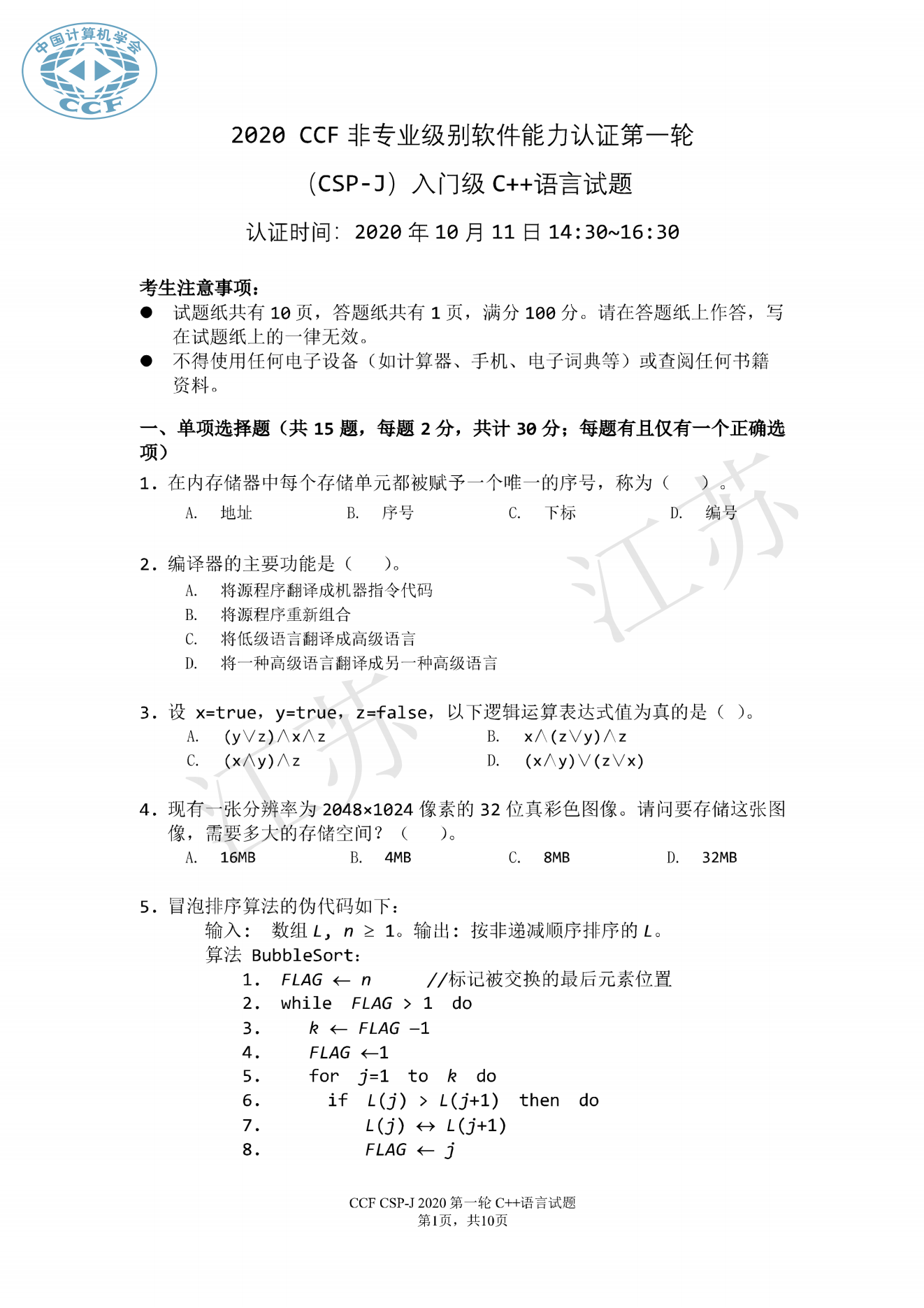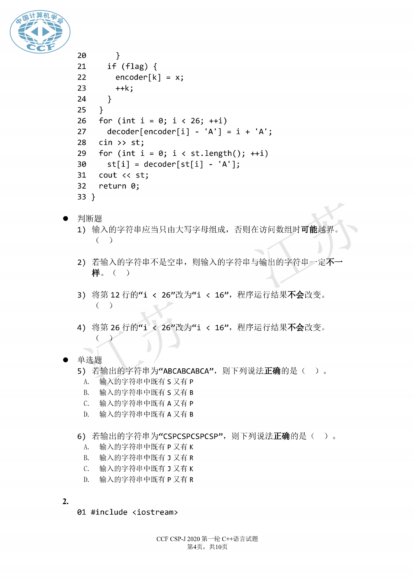 2020年CSP初赛