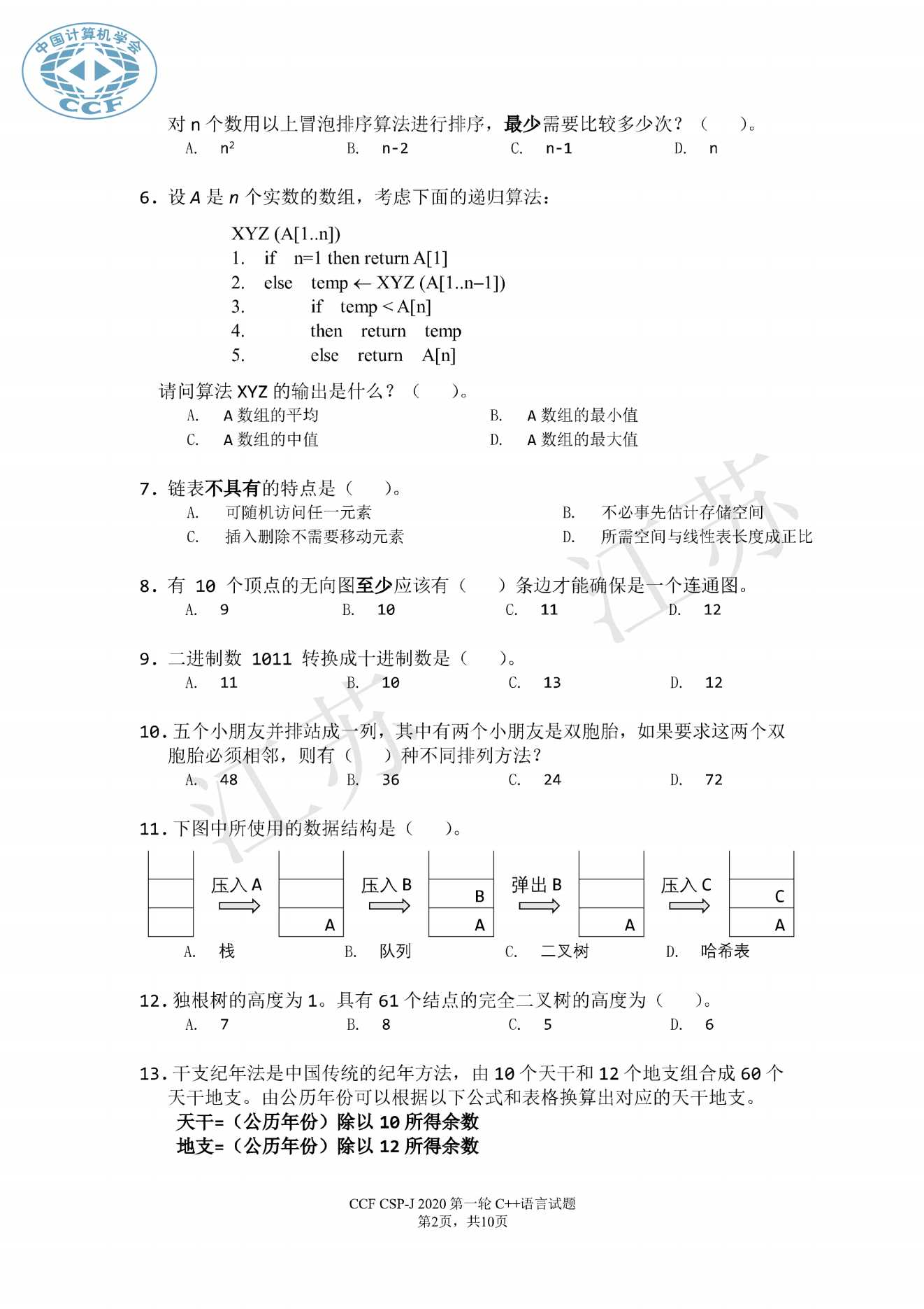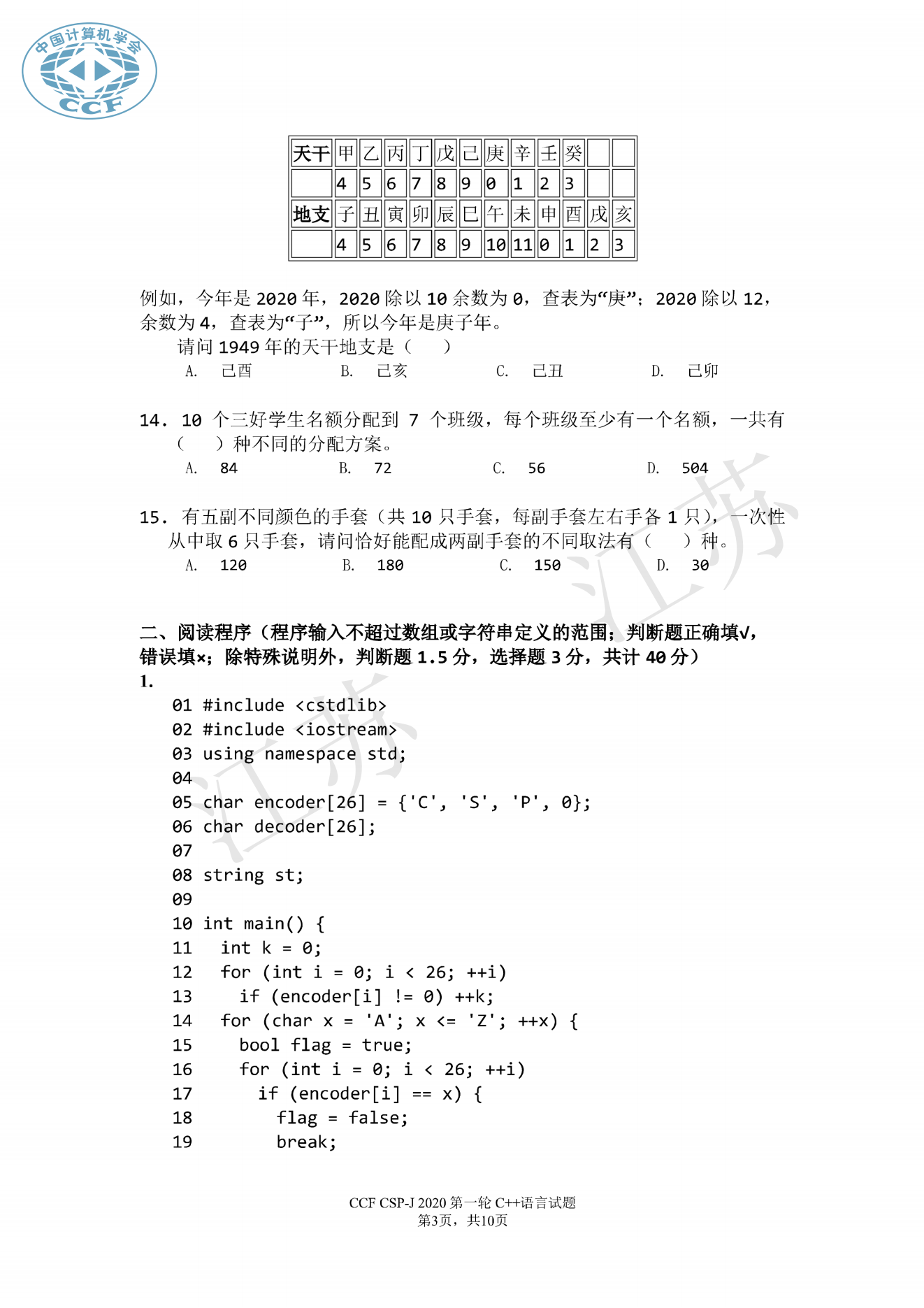 10239: 2020年CSP初赛