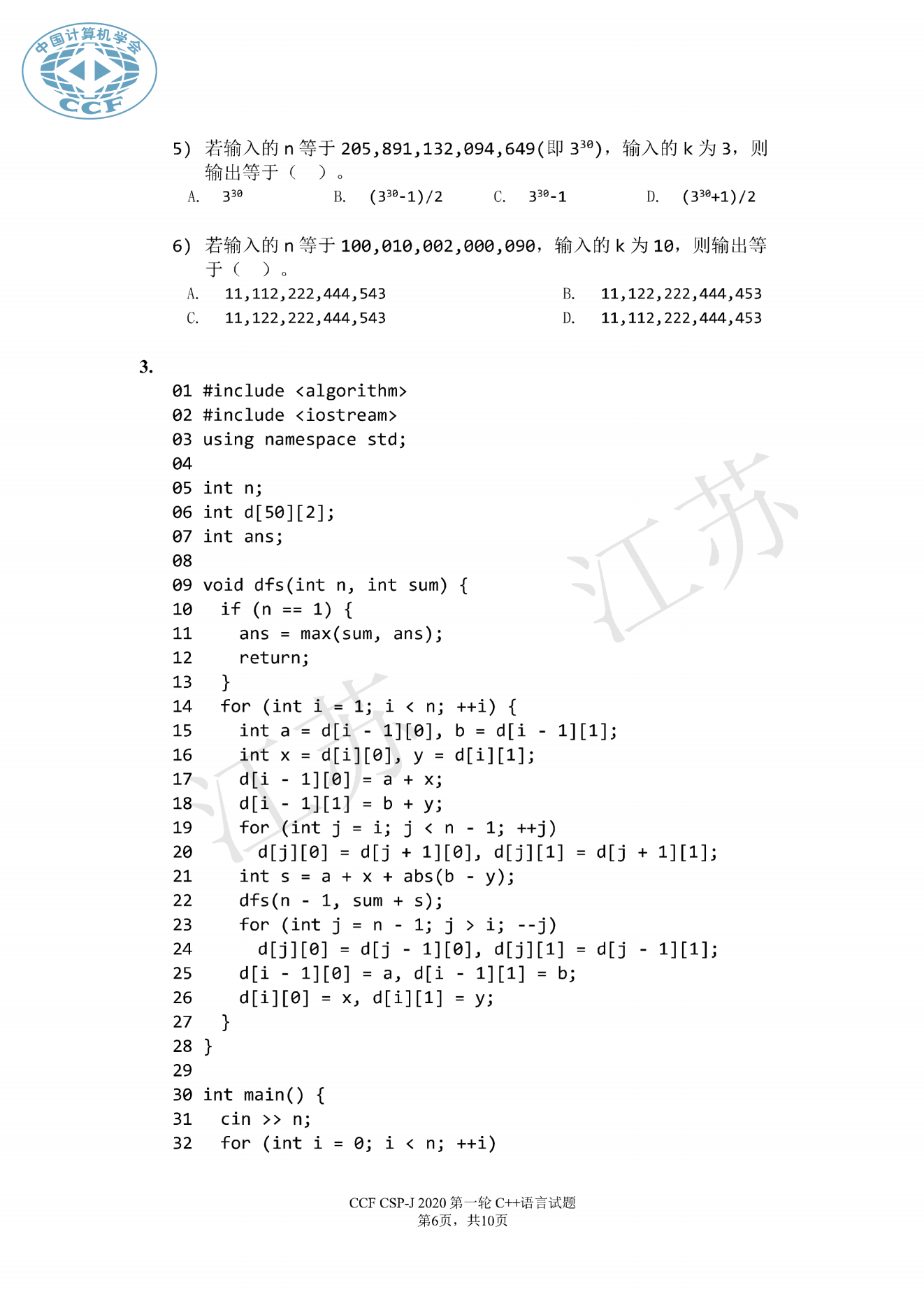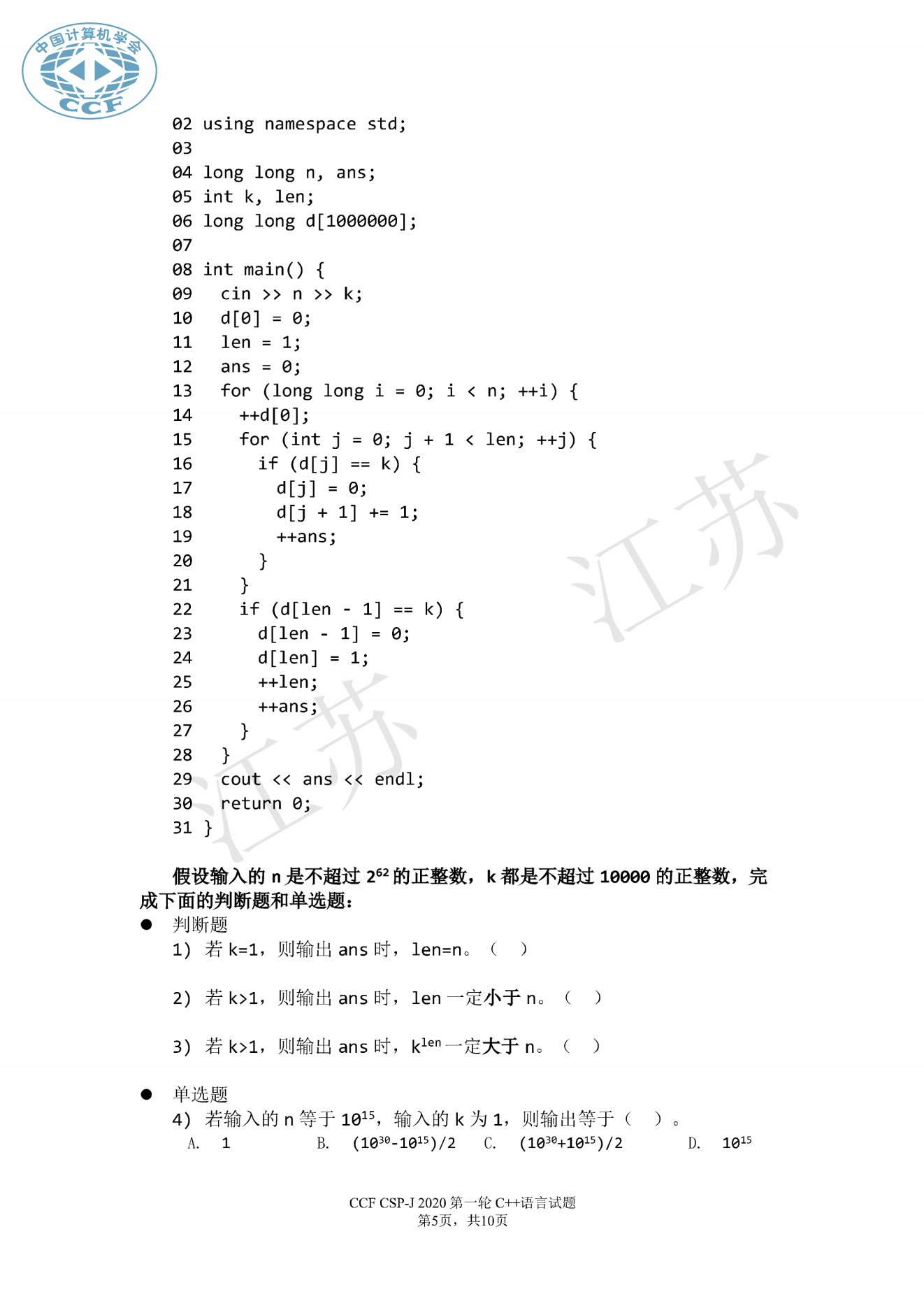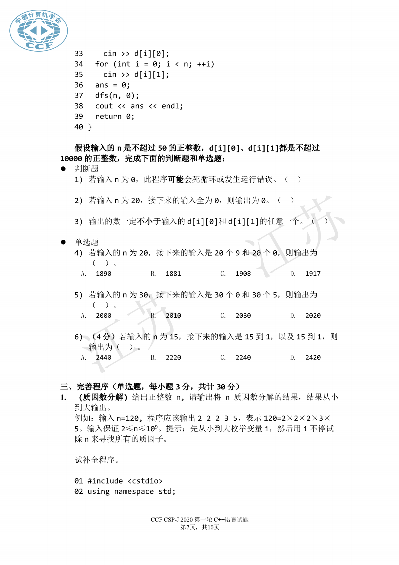 问题10239--2020年CSP初赛