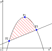 现在给你抛物线的顶点坐标和抛物线与直线的交点坐标,请你计算这块地的面积。
