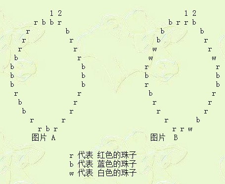 你有一条由N个红色的,白色的,或蓝色的珠子组成的项链(3<=N<=350),珠子是随意安排的。 这里是 n=29 的二个例子: