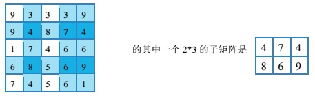 1. 子矩阵:从一个矩阵当中选取某些行和某些列交叉位置所组成的新矩阵(保持行与列的相对顺序)被称为原矩阵的一个子矩阵。