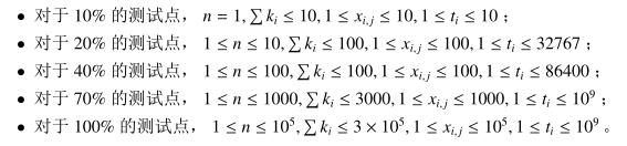 ,1≤x(i,j)≤105, 1≤t(i-1)≤ti≤109。