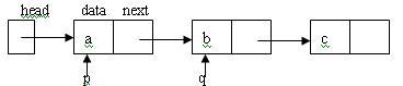 1. 假定已建立以下链表结构,且指针p和q已指向如下图所示的结点: