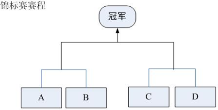 现在要举行一次锦标赛。双方抽签,分两个组比,获胜的两个队再争夺冠军。(参见图)
