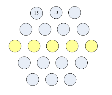 把 1 2 3 ... 19 共19个整数排列成六角形状,如下: