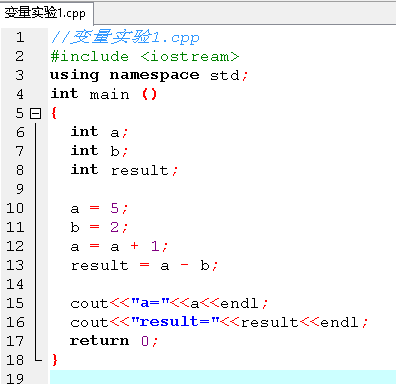 所有这些你在脑子里做的事情与计算机用两个变量可以做的事情非常相似。同样的处理过程用C++来表示可以写成下面一段代码: