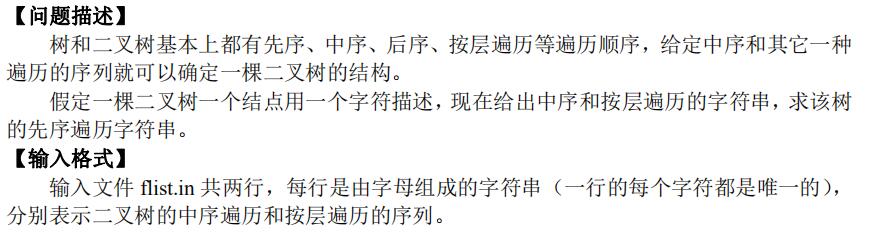 输出文件 flist.out 就一行,表示二叉树的先序序列。