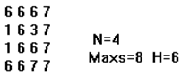 下面是一个4*4的矩阵,它的特点是:(1)矩阵的元素都是正整数;(2)数值相等的元素相邻,这样,这个矩阵就形成了一级级“平台”,其上最大的“平台”面积为8,高度(元素值)为6。如果平台面积相等,那么高度大的为最大“平台”。