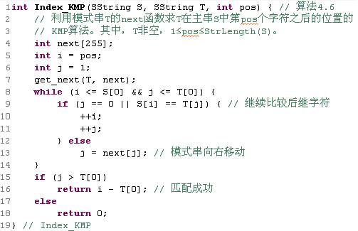 KMP算法是字符串模式匹配算法中较为高效的算法之一,其在某次子串匹配母串失败时并未回溯母串的指针而是将子串的指针移动到相应的位置。严蔚敏老师的书中详细描述了KMP算法,同时前面的例子中也描述了子串移动位置的数组实现的算法。前面你已经实现了子串移动的数组,现在就来利用该数组来实现KMP模式匹配。