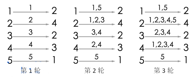 游戏开始时,每人都只知道自己的生日。之后每一轮中,所有人会同时将自己当前所知的生日信息告诉各自的信息传递对象(注意:可能有人可以从若干人那里获取信息, 但是每人只会把信息告诉一个人,即自己的信息传递对象)。当有人从别人口中得知自 己的生日时,游戏结束。请问该游戏一共可以进行几轮?
