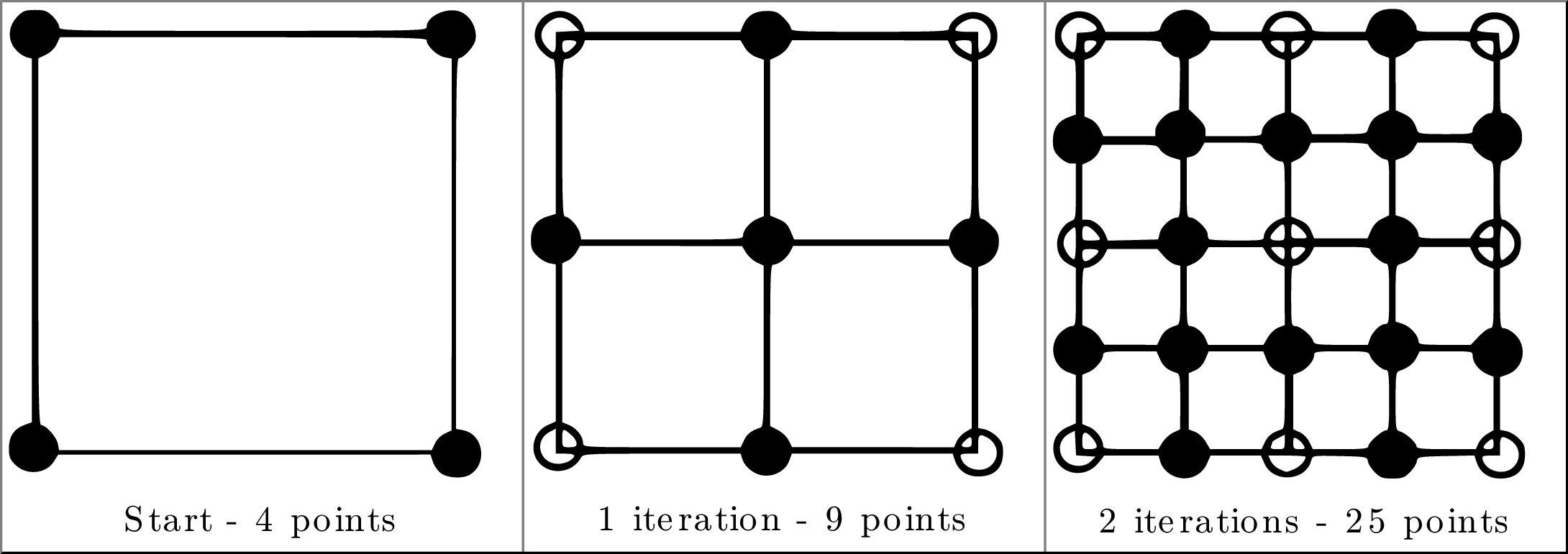 为了开始算法,Mirko选择4个点形成一个完美的正方形。然后执行以下步骤: