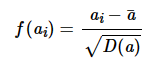 使用如下函数处理所有数据,得到的n个浮点数f(a1),f(a2),...,f(an)即满足平均值为0且方差为1:
